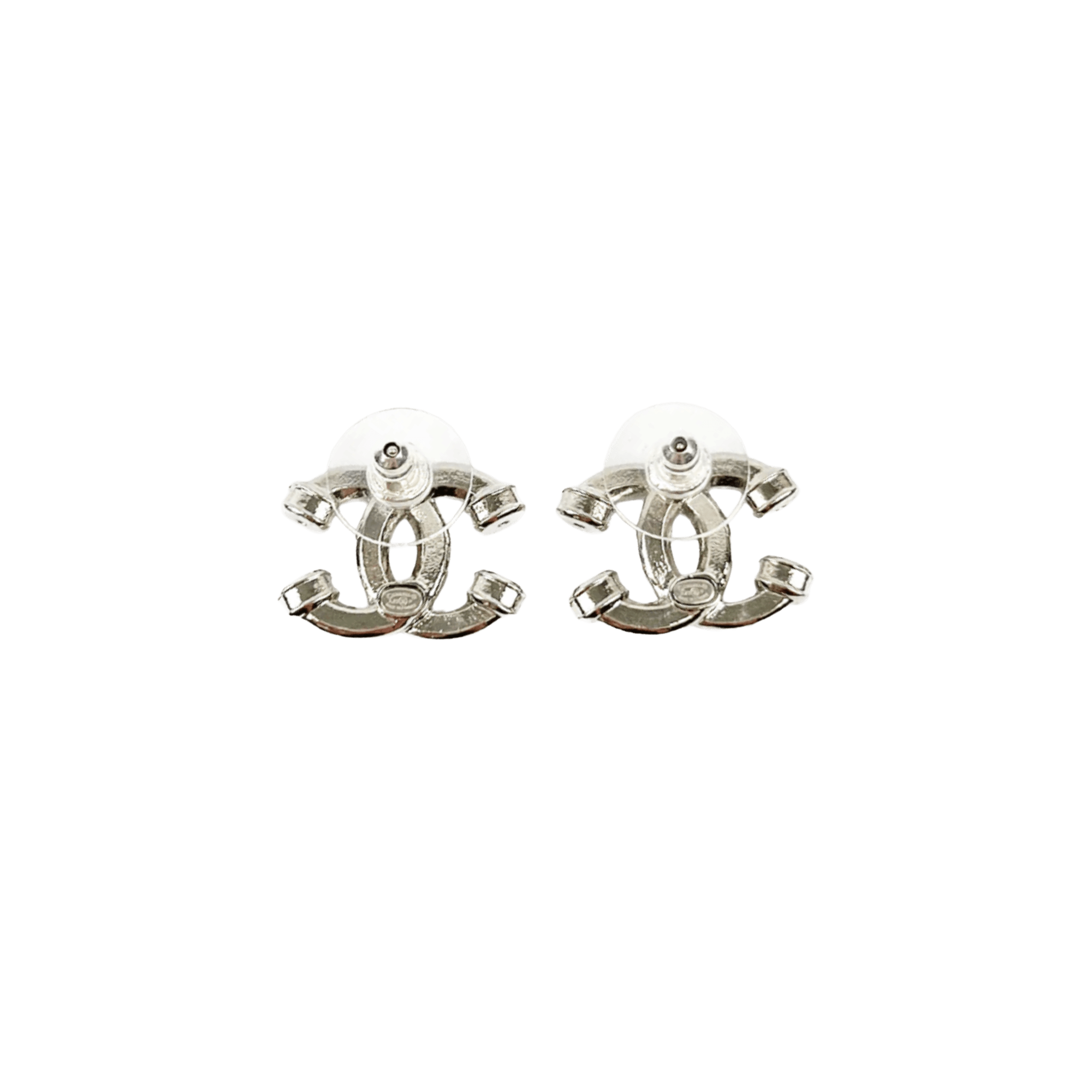 Brincos Chanel clássicos com banho de prata, adornados com o emblemático logótipo duplo C entrelaçado, criado por Coco Chanel e reconhecido como um dos símbolos máximos de elegância da Maison. Trata-se de brincos de prego, que assentam perfeitamente no lóbulo da orelha, tornando-os uma escolha versátil tanto para o dia a dia como para ocasiões mais formais.
