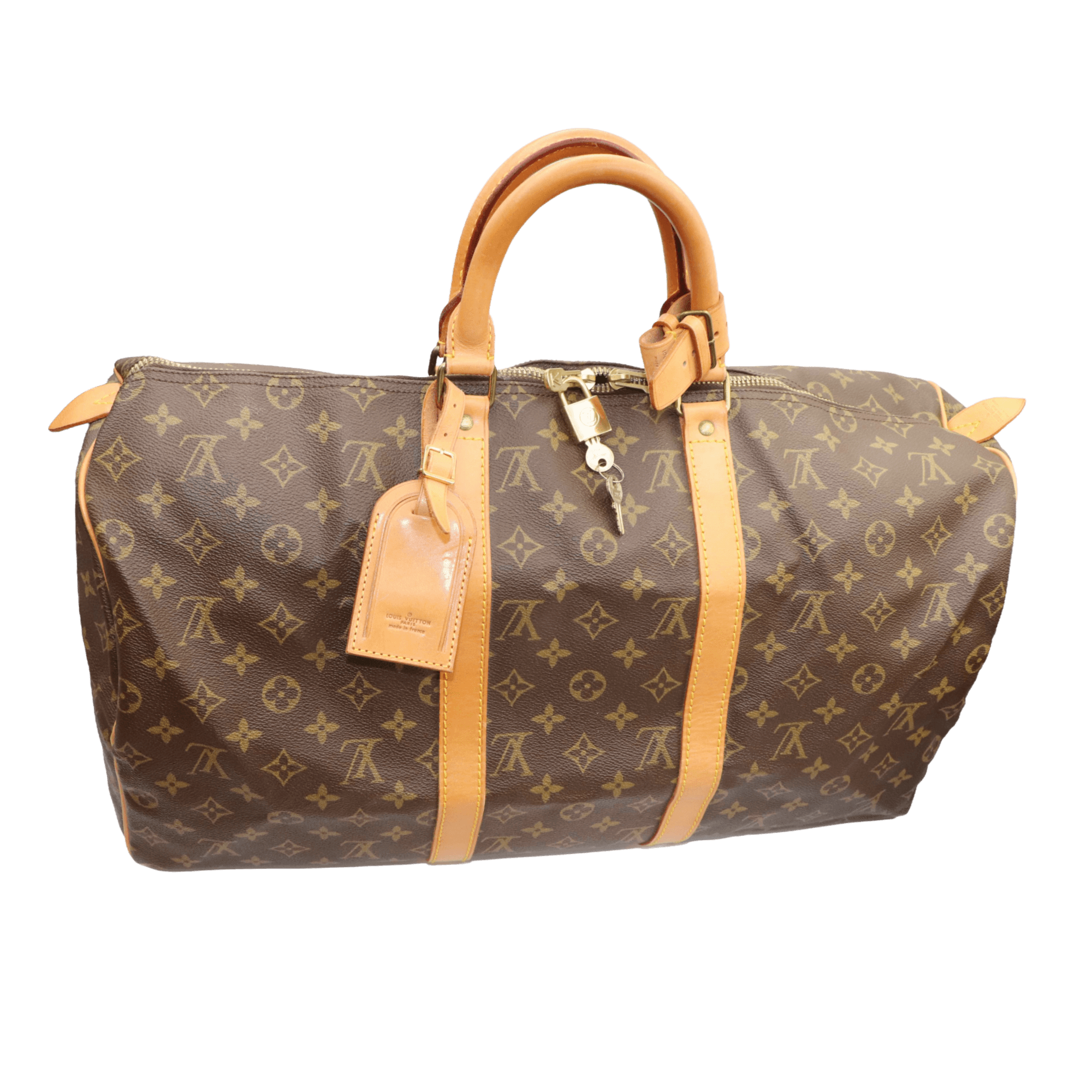 Bolso icónico da Maison para quem gosta de viajar com estilo e praticidade, já que se trata de uma bolsa leve e espaçosa, confecionada em canvas Monogram.
