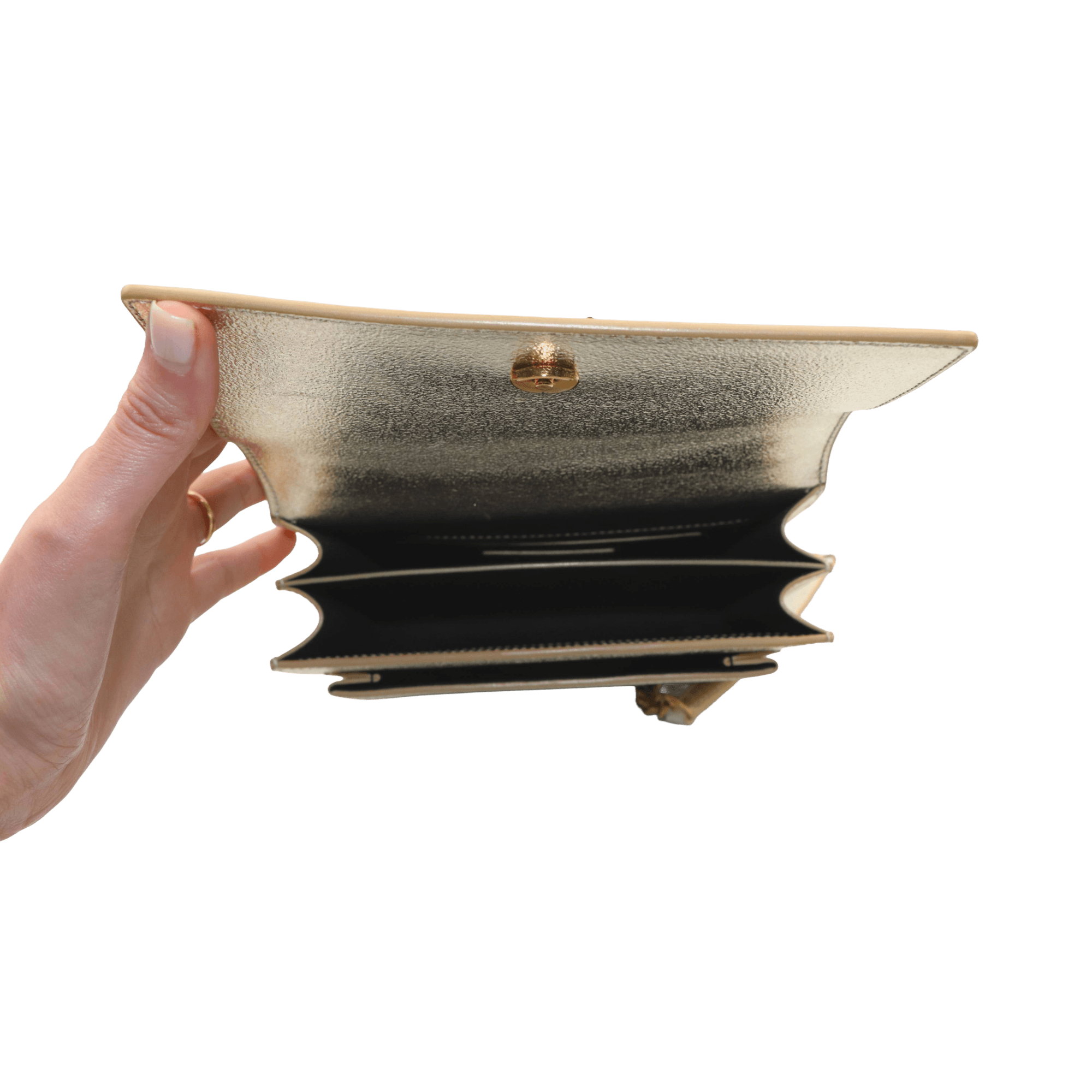 A Sunset Small caracteriza-se por ser uma das malas mais cobiçadas da marca, graças ao seu design estruturado e ao interior bem organizado. Possui dois compartimentos interiores e um bolso frontal, o que lhe confere grande funcionalidade. A sua cor champanhe faz dela a mala ideal para quem procura uma peça versátil, capaz de transitar com elegância para a noite e para ocasiões especiais. A escolha perfeita para quem aprecia sofisticação no dia a dia.
